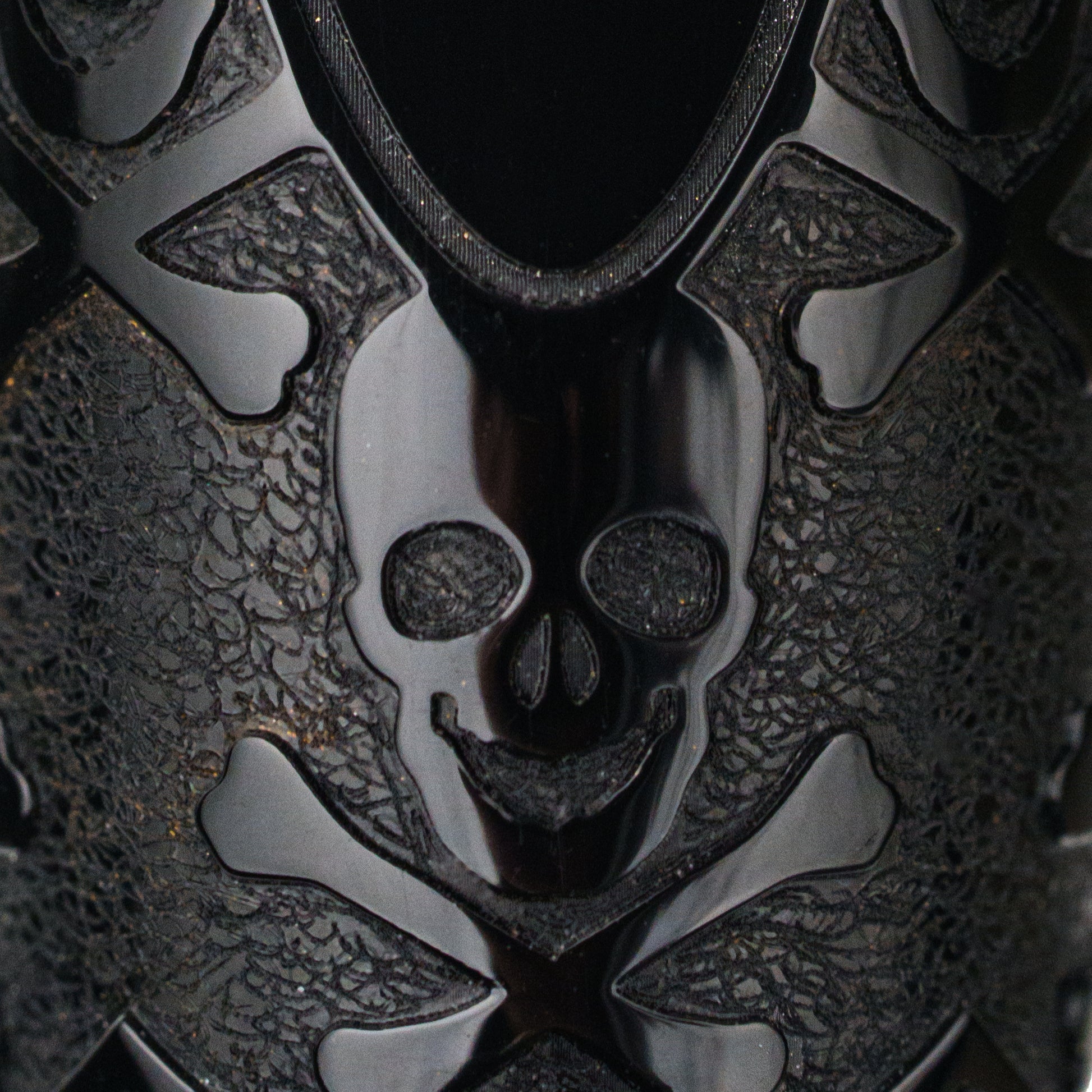 - Color/finish: Black with sculpted skull emblem and textured barrel