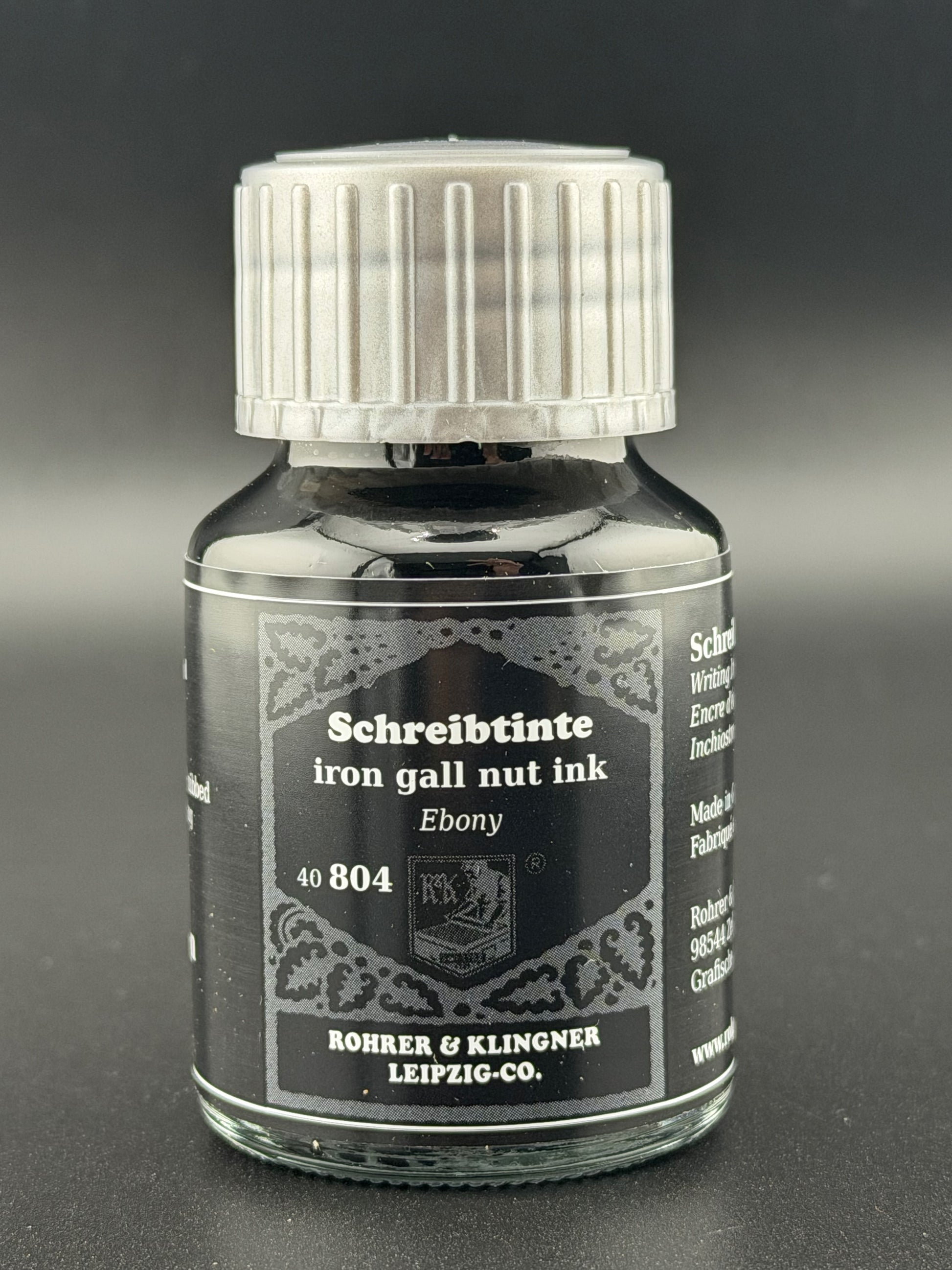 This is something really special: a traditionally made iron gall nut fountain pen ink, which means it's a waterproof/permanent ink. This is a limited edition from Rohrer & Klingner, made in a single production run in 2023 - when they're gone, they're gone.