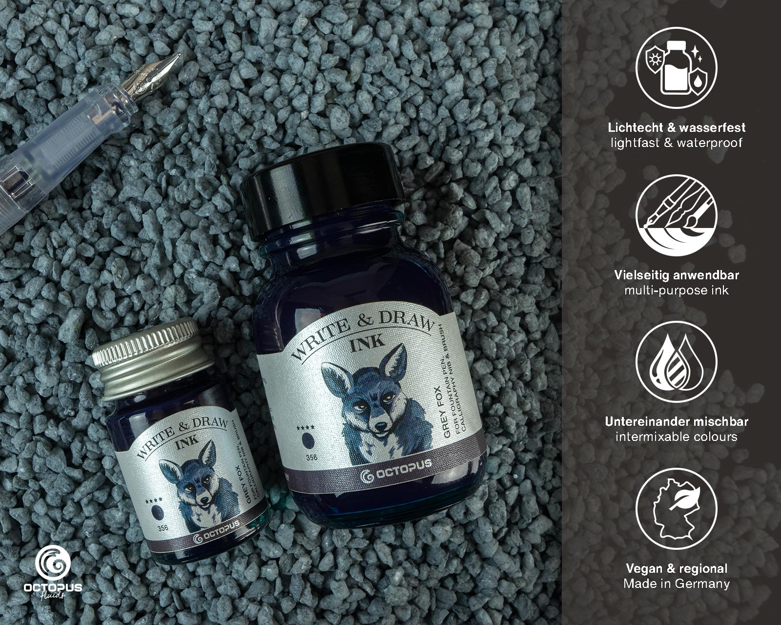 To ensure trouble-free use in fountain pens, avoid letting pigment inks like Octopus Write and Draw dry out in your pen.