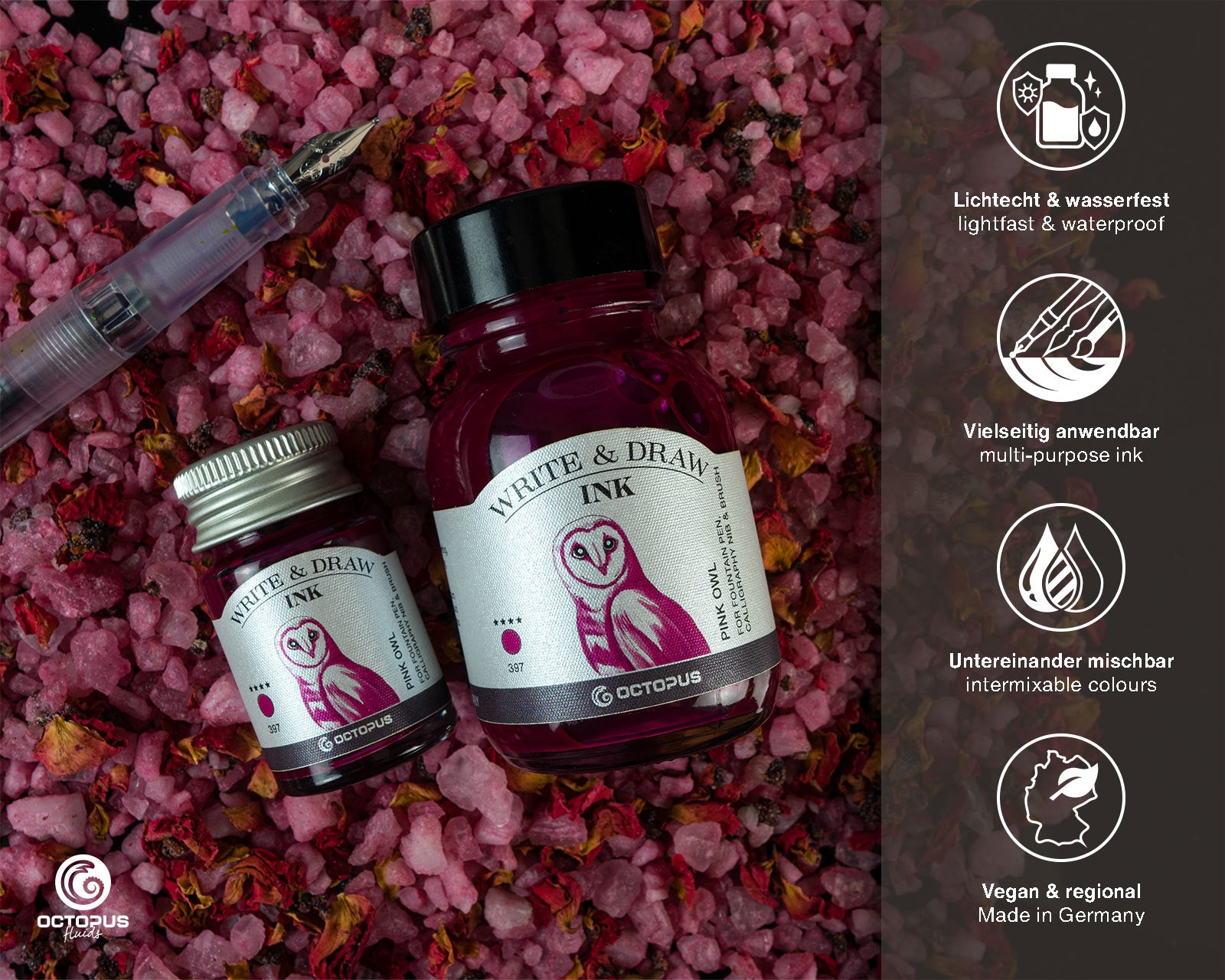 To ensure trouble-free use in fountain pens, avoid letting pigment inks like Octopus Write and Draw dry out in your pen.