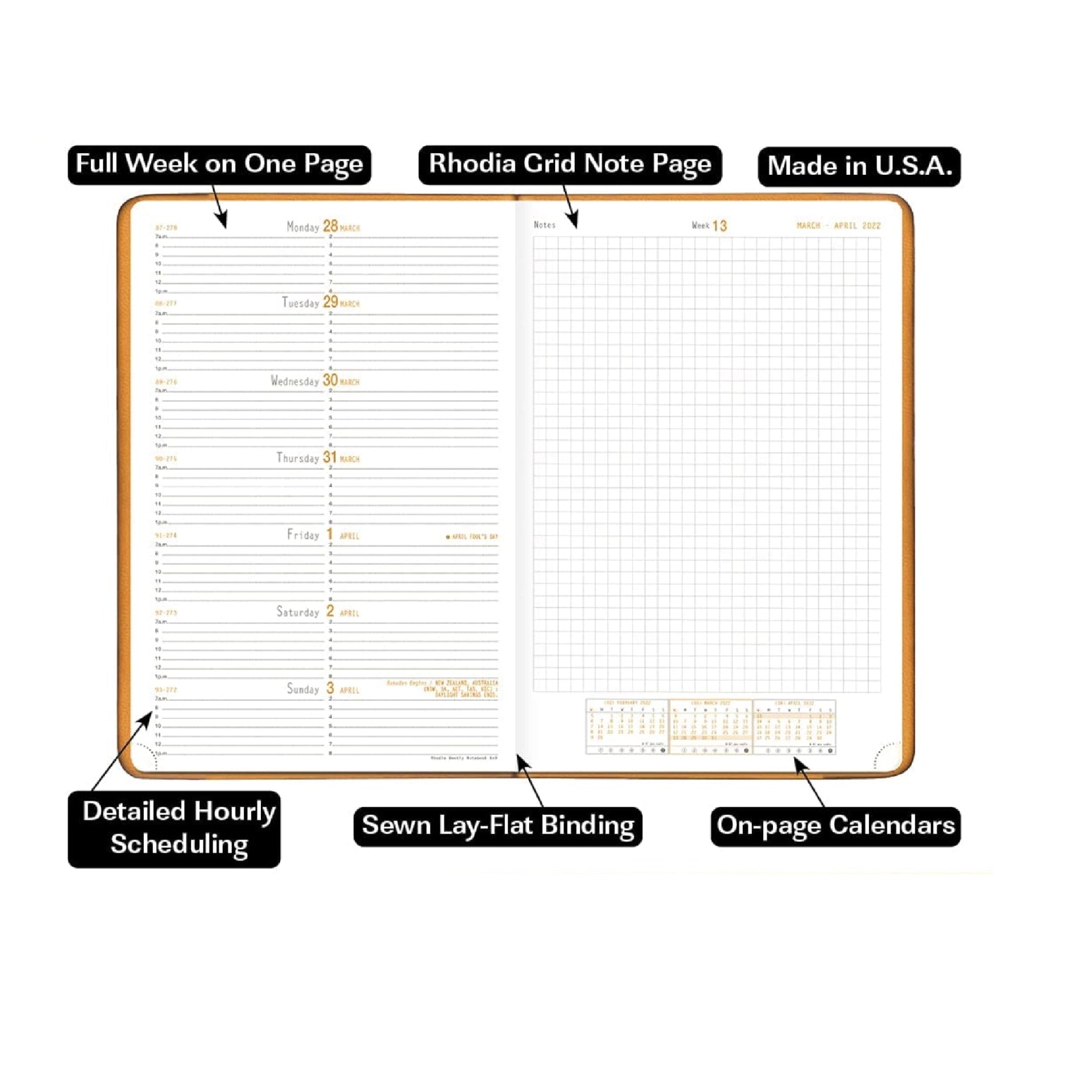 The iconic Rhodia Webplanner is a journal and planner all in one. Made in the USA with our luxurious, 90g, super-smooth and extra white French-made paper, the pages are fountain pen and marker friendly.