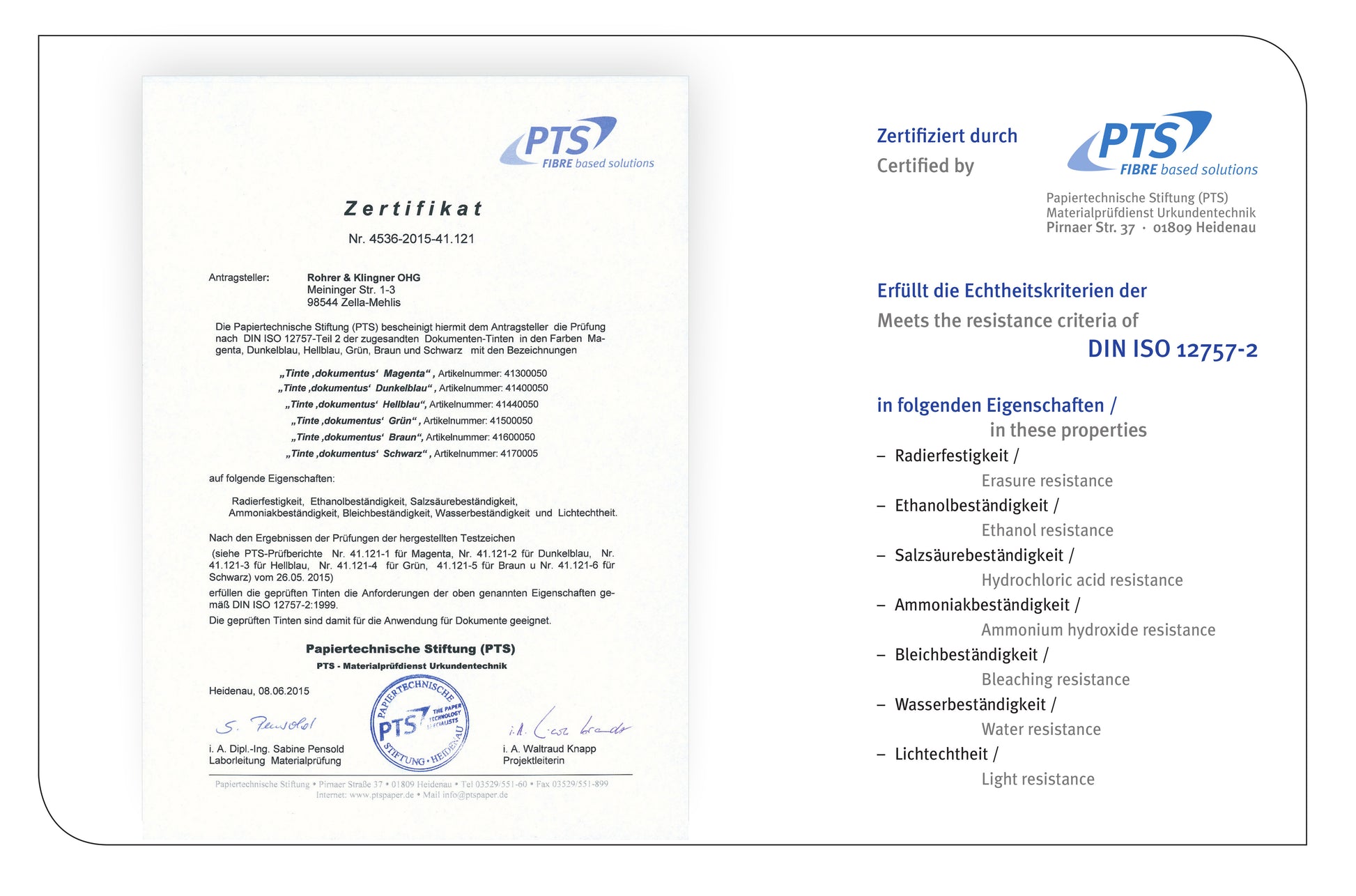 Rohrer & Klingner's "Dokumentus" line of document inks is a DIN ISO 12757-2 certified document ink which means it's permanent: waterproof, UV resistant / lightfast, bleach resistant, ammonia resistant, sulfuric acid resistant, and more. Basically, the paper you write on will disintegrate long before this ink does.