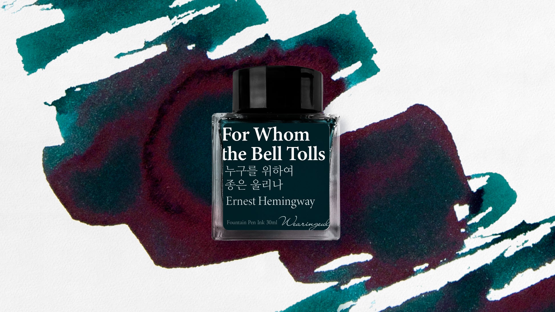 For Whom the Bell Tolls is a blue-teal fountain pen ink with red sheen.