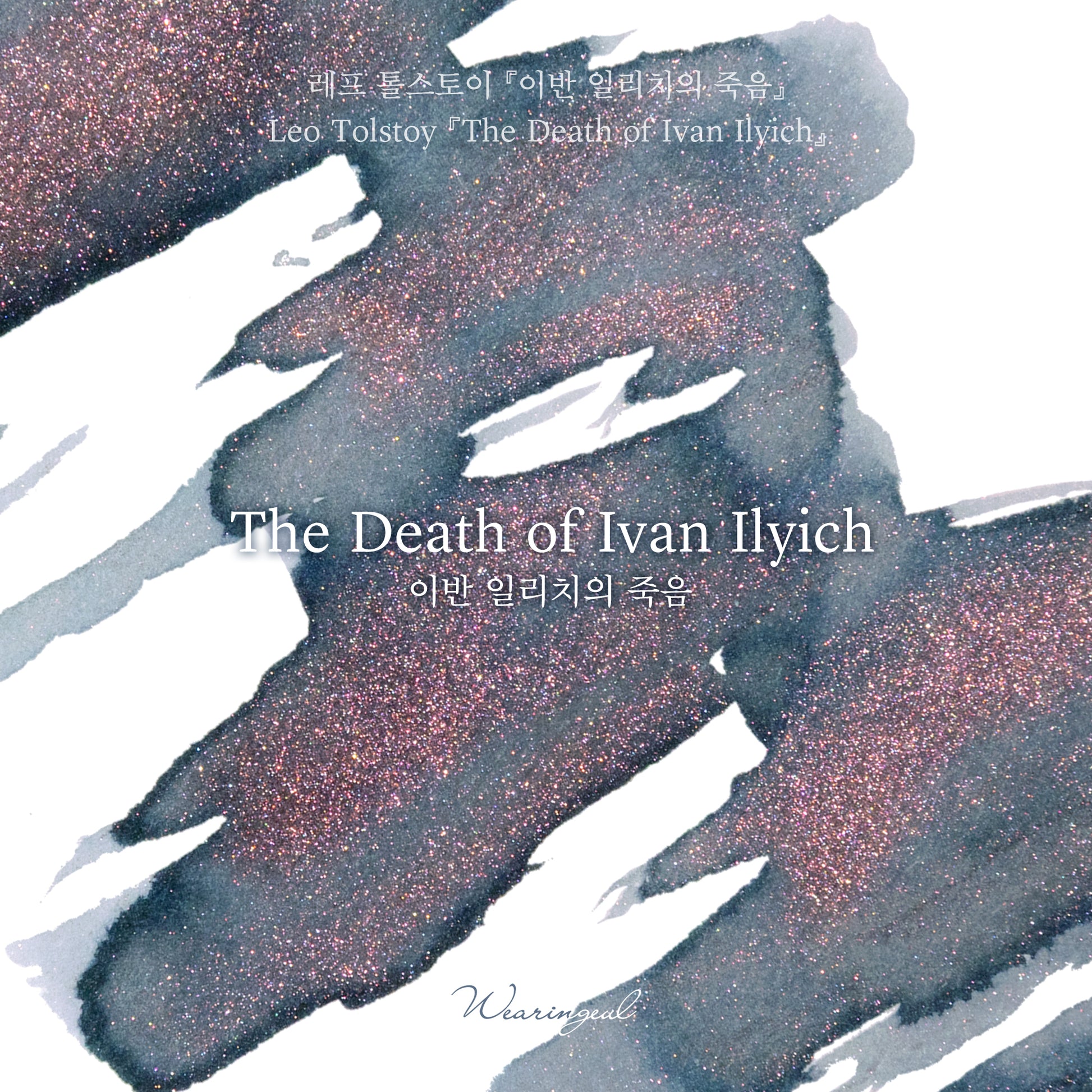 Wearingeul's The Death of Ivan Ilyich (Leo Tolstoy) is a grey-blue fountain pen ink with pink-red glitter (shimmer) and grey shading.